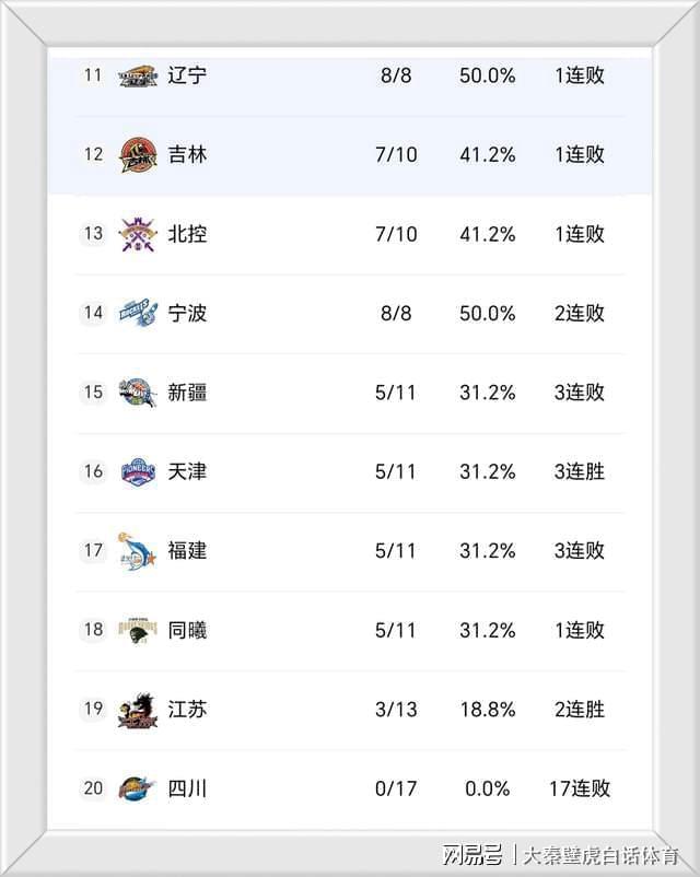 ③、山东回到前五,北京男篮11胜5负位居第6;