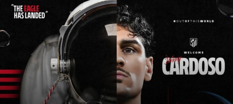 最后一位加盟的是卡尔多索,他从贝蒂斯转会而来。尽管他的加盟早已不是秘密,但官宣时间却有些延迟。视频中的宇航员卡多索一脚将球踢向了马竞的主场。他臂上分别戴着美国国旗和巴西国旗的徽章,俱乐部用“鹰已降落”来确认他的加盟。